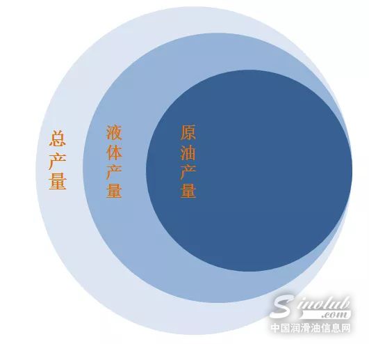 [桶油当量(Barrel Oil Equivalent,boe),指一桶油所含有的能量]总产量、液体产量和原油产量之间关系的简要示意图,液体(liquids)包括原油、凝析油和天然气