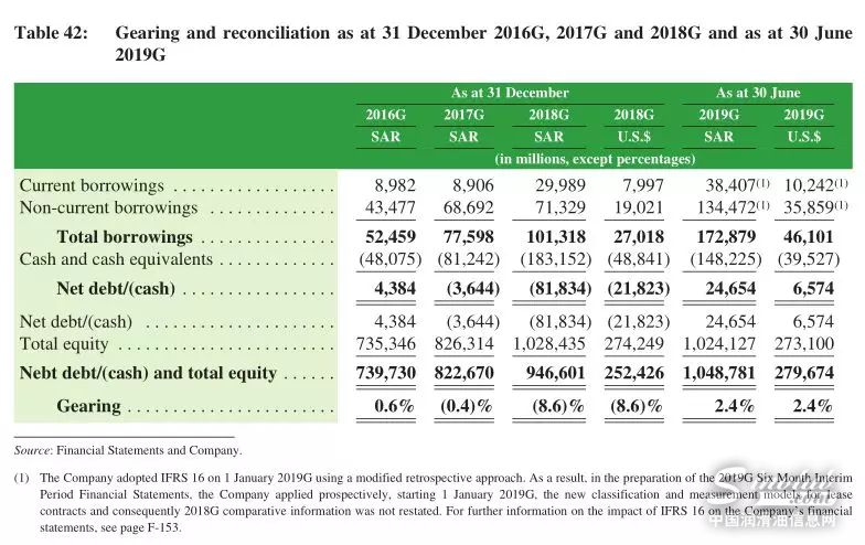 不仅如此,2.4%已经是近三年半以来沙特阿美杠杆率的最高水平(招股书只披露了2016年以来的财务数据)。2016年的杠杆率仅为0.6%。2017和2018年的杆杠率则干脆是负数,意味着这两年沙特阿美账上的现金和现金等价物如果用来偿债,偿还完后还能有富余。