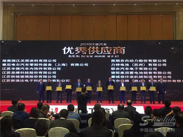 会上,江淮汽车对2019年度的优质供应商进行了表彰,龙蟠科技连续多年夺得“优秀供应商”称号,再次展现了龙蟠在车企配套方面的专业实力。