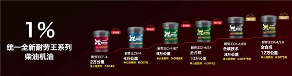 与此同时,全新耐劳王系列产品涵盖各级别发动机油,在原有产品性能上进行大幅升级,全新ODI PLUS技术使其拥有更长的换油周期,并全面引入欧洲标准,增加了CK-4级别产品,涵盖国三到国六车辆的用油需求,拥有优异的燃油经济性,可以帮助车队减少1%燃油费用,进而彻底改变燃油消耗高、能效损失大的现状。
