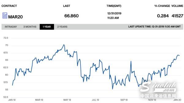 2019年初以来布伦特原油期货走势