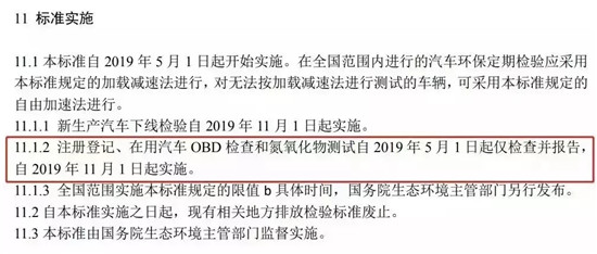 该标准明确规定:从2019年11月1日起,部分车辆年检将增加OBD检查、柴油车辆将增加氮氧化物排放检验。