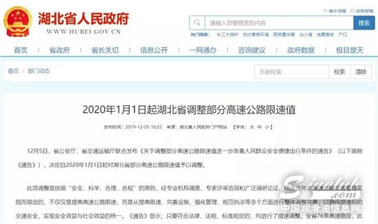 2019年12月5日,湖北省人民政府发布通知:从2020年1月1日起,湖北大部分高速公路提高限速值!