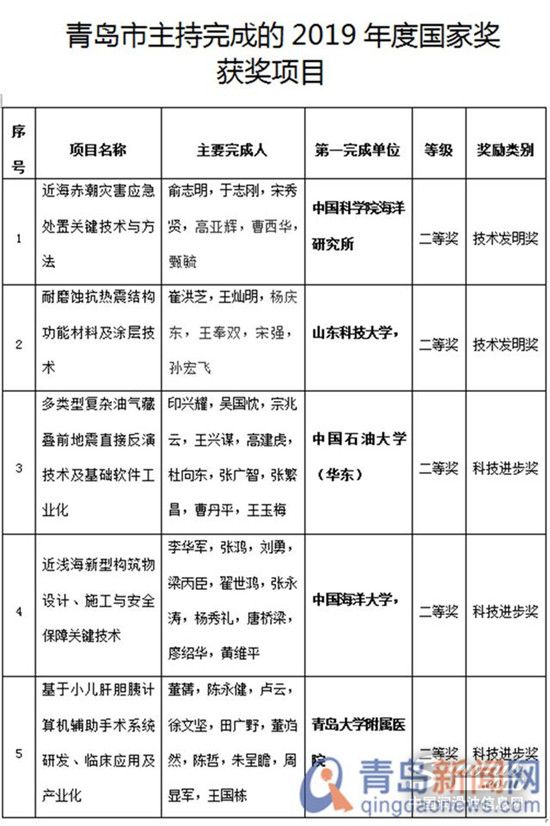 厉害了!青岛11个项目获国家科学技术奖(名单)