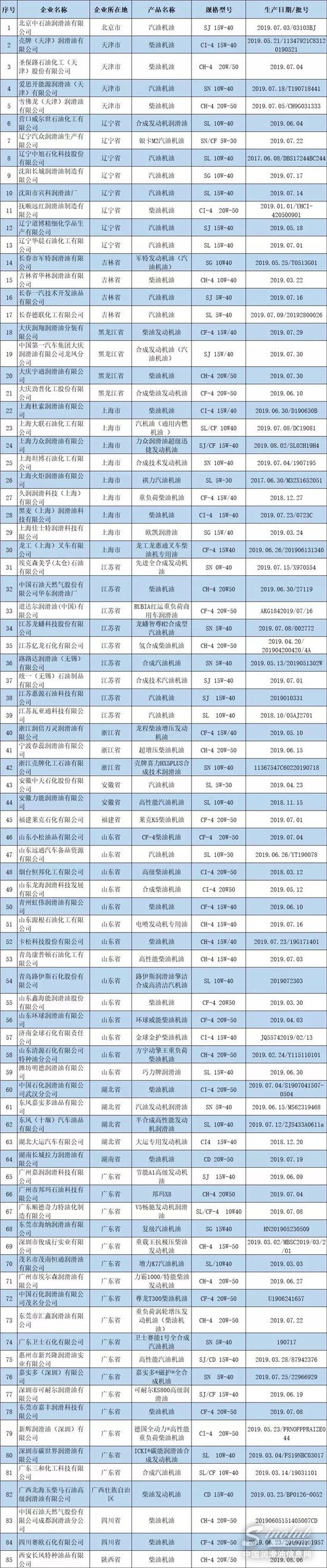 权威发布:2019年国家质量监督局汽车润滑油抽检统计,5批次不合格