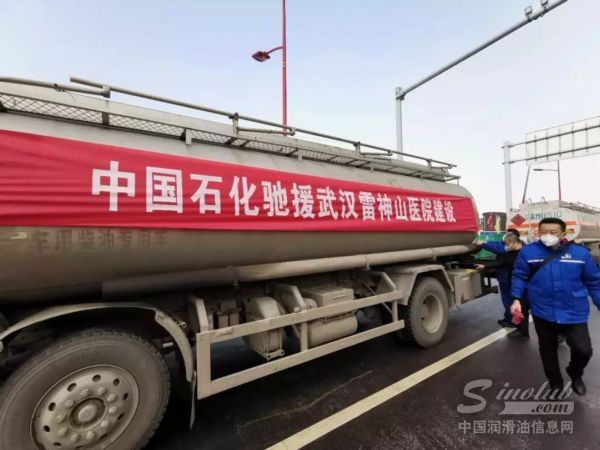 此次捐赠由中国石化湖北石油分公司和长城润滑油华中分公司执行。中国石化党团员突击队押运油罐车,从阳逻油库出发,驱车近100公里,行驶近2个小时抵达雷神山医院建设现场。中建商砼公司物流负责人张俊介绍,这一车油品可保障30台搅拌车和泵车使用3天。