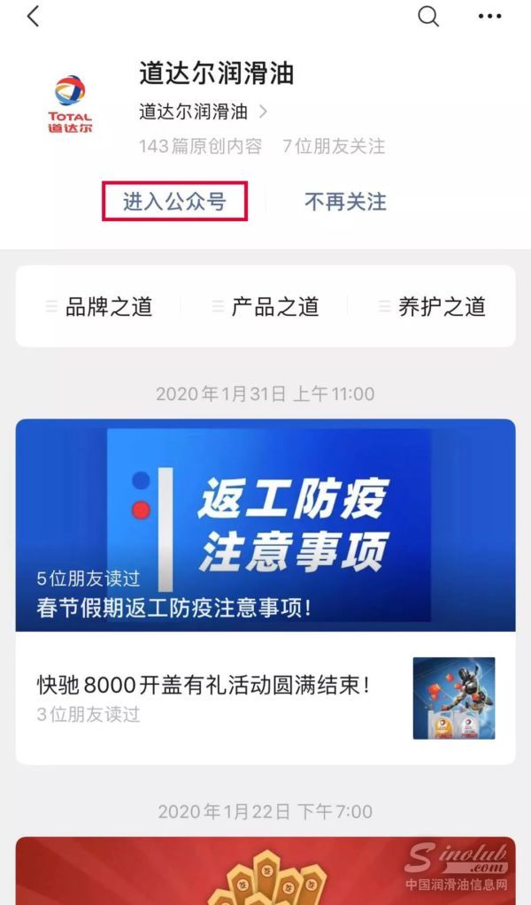 ③从道达尔润滑油公众号进入,或在道达尔润滑油公众号回复关键词。