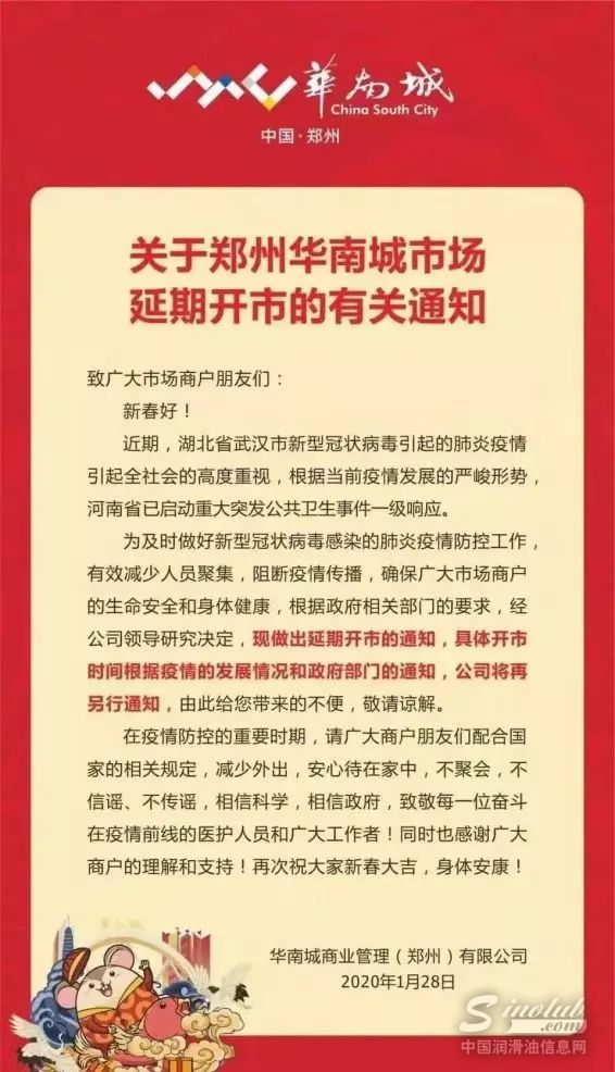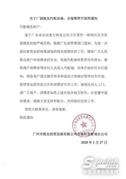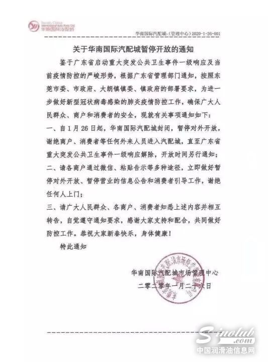 1、华南国际汽配城封闭,暂停对外开放,开放时间另行通知