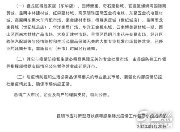 7、昆明市经开区骏信汽配城延期开市,重新营业时间另行通知