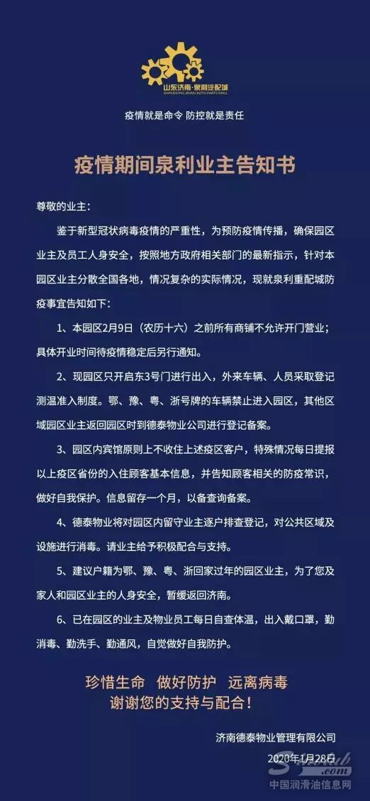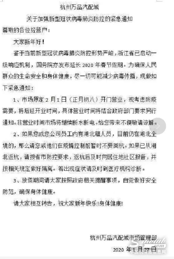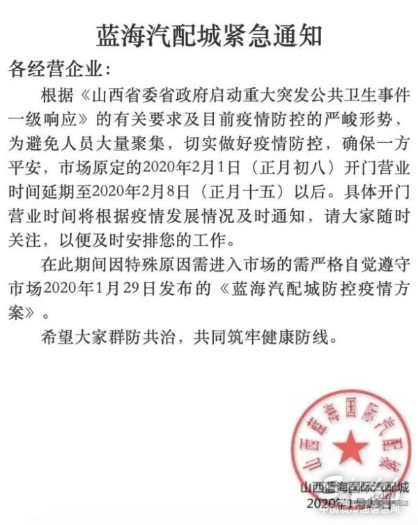 防控疫情!多家汽配城及连锁门店延期营业信息请查收