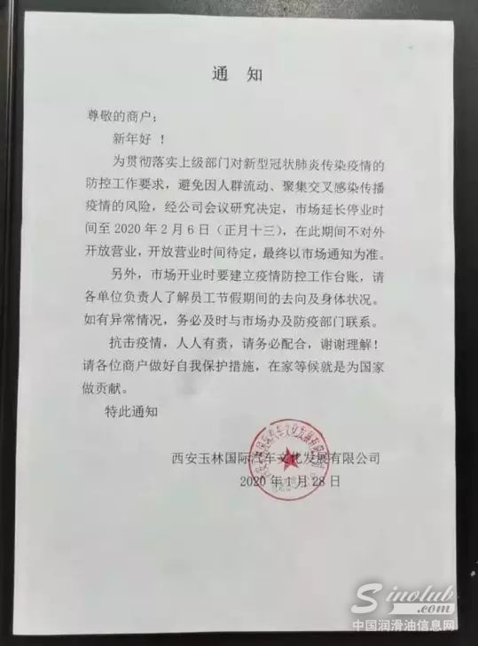 11、西安玉林国际汽车文化发展有限公司:市场延长停业时间至2月6日