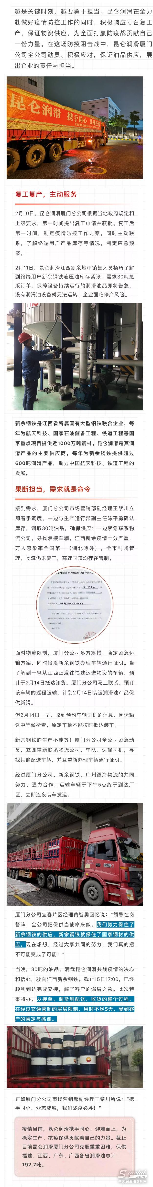 抗疫保供,使命在肩,昆仑润滑千里驰援新余钢铁!