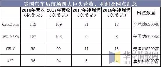修理厂配件模式占据主流,最终形成了维修连锁、零售连锁四大巨头,竞争格局寡头化。四大巨头分别为: