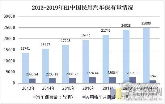 随着中国经济的高速增长,居民消费能力稳步提升,汽车销量也节节攀升,销量规模扩大了近4倍。截至2019年6月,全国机动车保有量达3.4亿辆,其中汽车2.5亿辆;