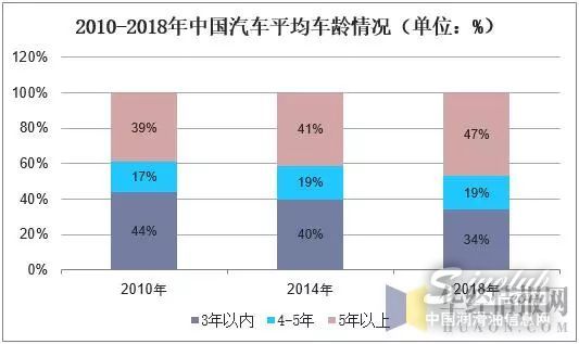 2018年美国平均车龄超过10年,而中国平均车龄仅有4.9年,但保有期5年以上的车辆占比较2010年增加8%,平均车龄快速提升。