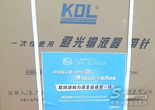 首批运抵湖北的是48,000套一次性使用避光静脉输液器。在物流不畅,原料短缺且企业未完全复工的不利情况下,路博润公司紧急联系输液器行业的优质生产企业,成功采购到48,000套由路博润医疗级热塑性聚氨酯弹性体Pellethane®为原材料的高端静脉输液器,为一线患者的救治保驾护航。