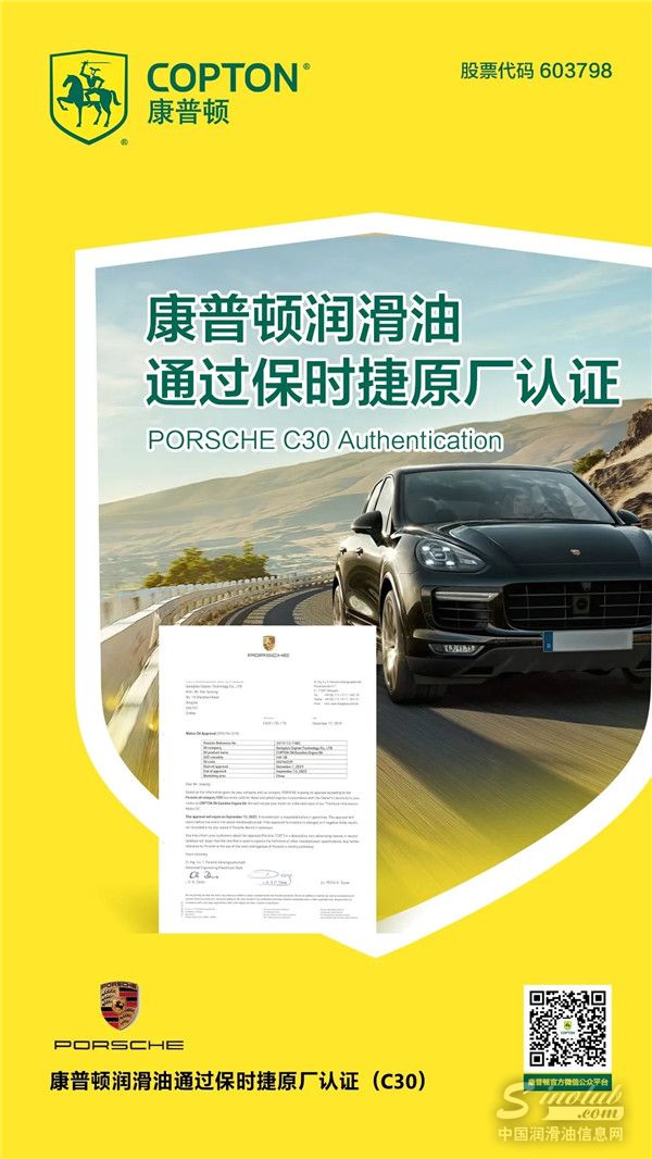 2020年复工伊始,康普顿再收捷报——德国保时捷C30原厂认证证书,这是继获得保时捷A40原厂认证后的又一重磅之作。作为世界公认的顶级车厂,保时捷认证也是行业内的顶级原厂发动机油认证标准之一,A40、C30双原厂认证的通过,再次验证了康普顿润滑油的卓越性能和技术实力。