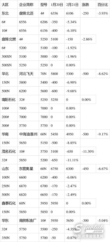 春节假期过后,2月份归来,基础油市场价格均呈现下行态势,一方面是节日期间炼厂库存升高,另一方面收疫情影响,下游企业部分延迟复工时间,供应压力增大下游需求迟迟未跟进,市场出货受阻,炼厂价格纷纷出现下滑。