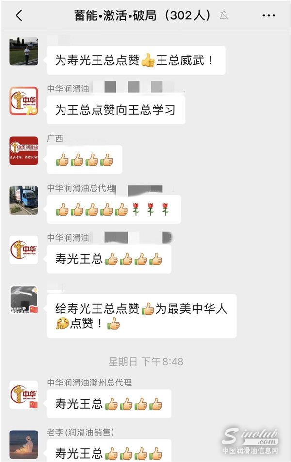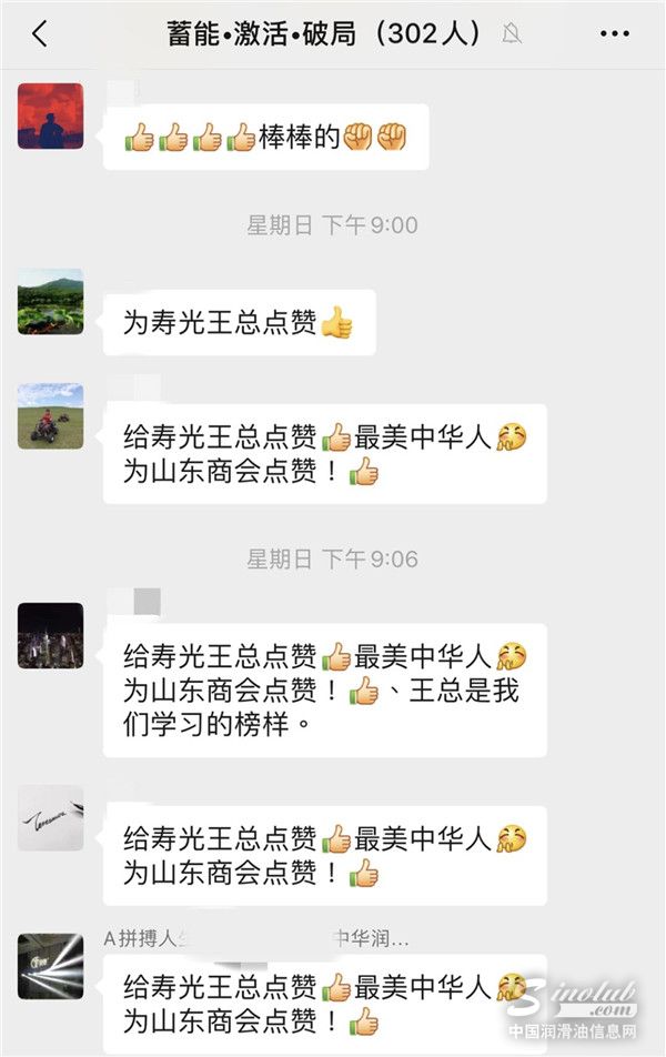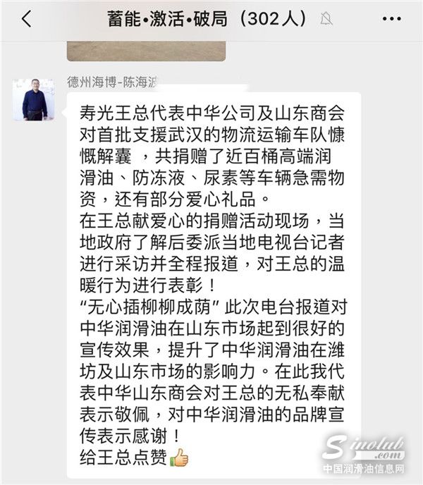 中华润滑油山东商会会长陈总深受感动,并代表商会表达敬佩之情。