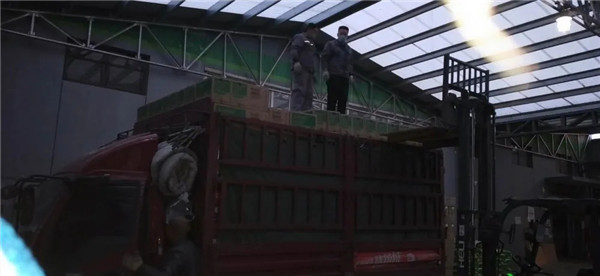 配货发货区可不轻松。检验、装车忙忙碌碌,却有条不紊,简洁高效;物流车严肃壮观,一字排开,整装待发。叉车应接不暇,上上下下,快节奏高质量完成任务。