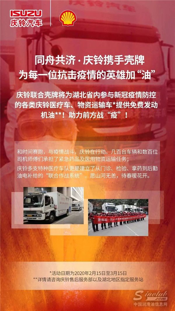 疫情无情人有情,2月15日起,庆铃湖北服务站挂出了海报《同舟共济·庆铃携手壳牌为每一位抗击疫情的英雄加油》——共同守护不凡的司机师傅和他们的战车,助力前方战“疫”。