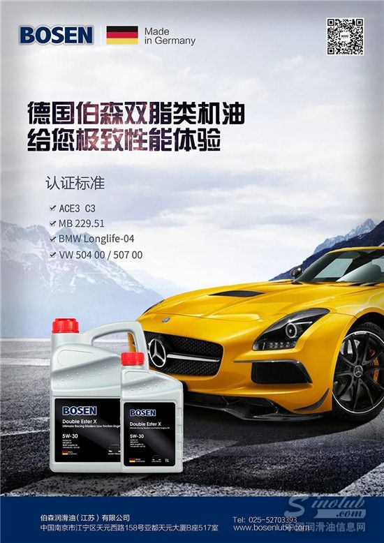 德国伯森润滑油是一家总部位于德国北莱茵-威斯特法伦州门兴格拉德巴赫的润滑油专业生产厂商,长期以来,伯森品牌润滑油已进入全球多个国家销售,年生产能力达到10万吨。