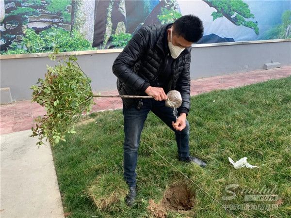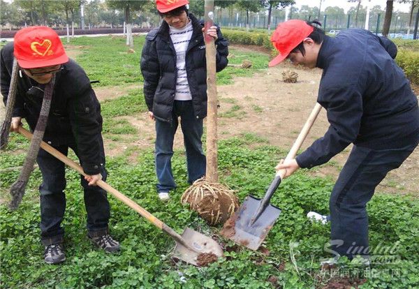 在上午十点钟,我公司行政经理组织工厂里党员及积极分子组成了植树队伍,对厂区和周边的道路进行绿化植树;同志们热情高涨积极劳动,为绿色环保贡献出自己的一份力而高兴。在去年的基础上,今年再植树120多颗。