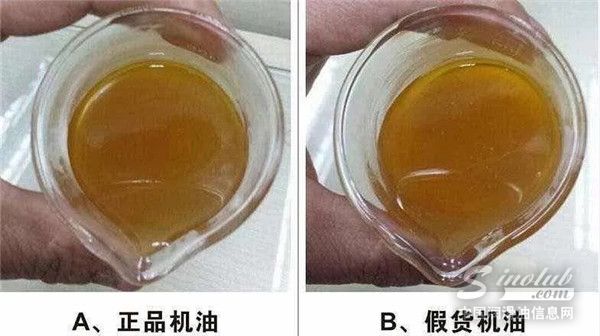先是看颜色,在常温状态下,正品机油的颜色都要比假货机油深很多。真油色浅透明,无杂质,无悬浮物,无沉淀物,晃动时流动性较好。假油或油色较深,或有杂质沉淀物,或味浓有刺激性,晃动时流动性较差,或用手摸有拉丝现象。
