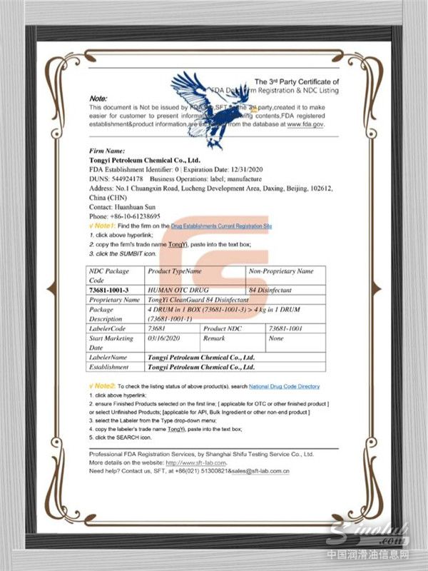 在上线短短一个月时间里,统一石化第五大品牌CleanGuard 84消毒液,不仅收获了市场上的广泛认可,而且就在近日也获得了美国FDA国际认证。这是继统一荷士塔食品级白油之后,统一旗下产品再获得美国FDA国际认证。