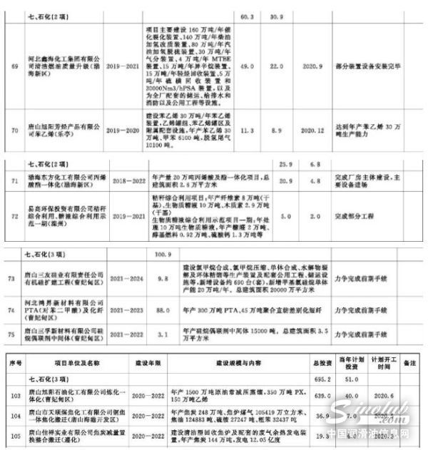 近日,《河北省2020年省重点项目计划》已印发,其中,涉及的石化项目10项,具体项目如下:
