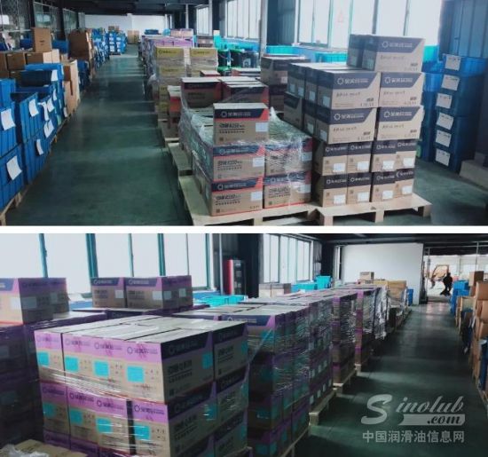 仓库里整整齐齐摆放着金美合汽机油和柴机油系列产品,场面壮观!这些金美合产品将陆续被分配到各个门店进行销售。