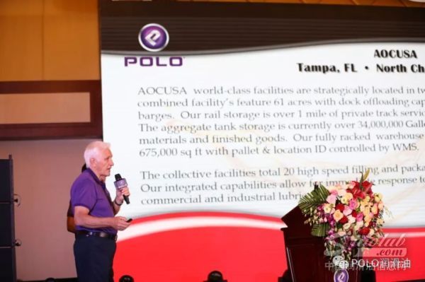 美国AOCUSA集团全球销售总裁Miles Gerald现场介绍了POLO润滑油的发展历史,美国AOCUSA集团在美国有10个润滑油生产工厂,年生产能力为1亿加仑,60%的润滑油为美国本土销售,40%的润滑油远销海外,在全球多个国家建立了销售网络。POLO润滑油是美国AOCUSA集团旗下润滑油自主品牌,始于1903年,在美国有100多年的发展历史,POLO润滑油采用了独家TriMax配方技术,赋予润滑油优良的抗磨减摩,抗氧化性能,大大提升了润滑油保护性并延长了润滑油的使用周期,美国POLO润滑油将此技术从美国本土带到中国市场,致力于为中国车主带来节能降耗长效的润滑保护体验。