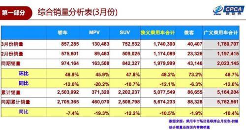3月份,狭义乘用车销量为174.03万辆,同比下降12.1%,但环比增长了48.2%,车市出现回暖之势。