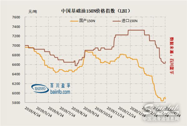 2020年2月初至3月中旬,因为下游行业复工缓慢,供需失衡,基础油价格一路下跌,与去年同期相比基础油成本倒挂严重。