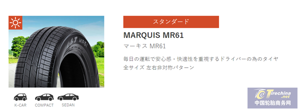 正新乘用车胎一直重视日本市场的开发,经过长期的市场经营,产品品质、供货服务得到市场认可,此次开始销售的MR61同样在日本市场受到欢迎。先前MEDALLION系列MD-A1、SAHARA系列CS900已在AUTOBACS 销售,市场认可度较高。