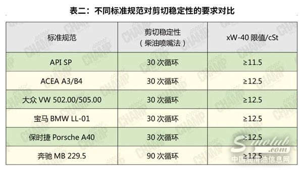 从表二可以看到,奔驰MB229.5的剪切稳定性能要求远高于API/ACEA/大众/宝马/保时捷等,是该项指标目前全球的最高标准。