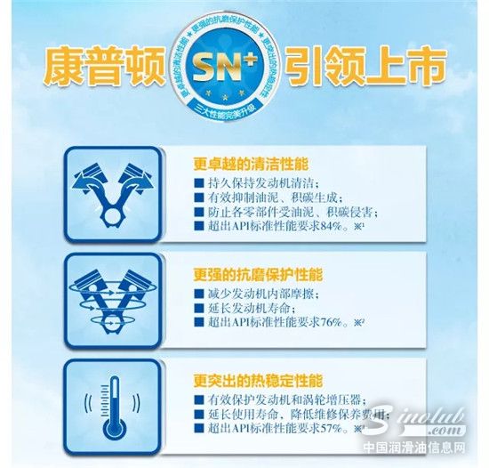 康普顿SN +,“+的不止一点,三大性能完美升级”,升级后的油品性能表现更为优秀:清洁性能高于行业标准84%;抗磨损保护性能高于行业标准76%;抗氧化性能高于行业标准57%。