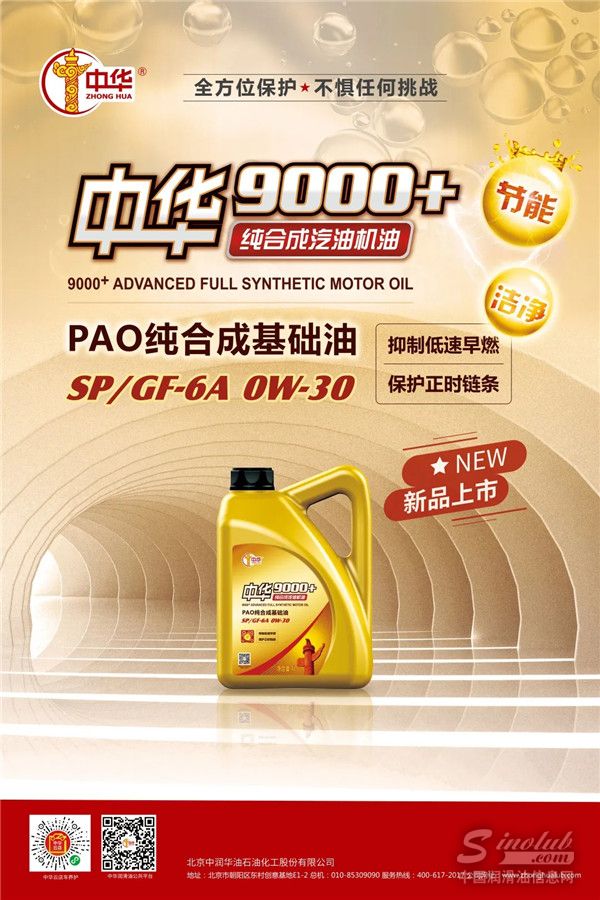 应最新行业标准API SP ,中华9000+SP GF-6A亮点为:节能、清洁;降低维修频率;减少TGDI发动机低速早燃现象;保护正时链条;覆盖新领域——满足混动车用油要求。