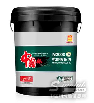中国杯M2000抗磨液压油,符合国标HM高压标准,承受压力40兆帕,工作寿命2000小时,用途广泛,适用于多种中、高压液压系统设备。