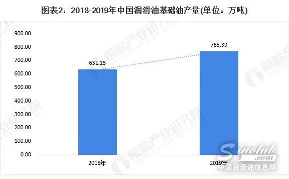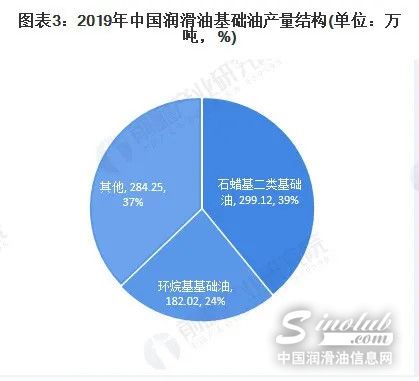 据中国润滑油网统计数据显示,2019年,我国基础油总产量765.39万吨,同比增加21.27%。其中,石蜡基二类基础油总产量299.12万吨,环烷基基础油总产量182.02万吨,二类基础油产量占总产量的62.86%。