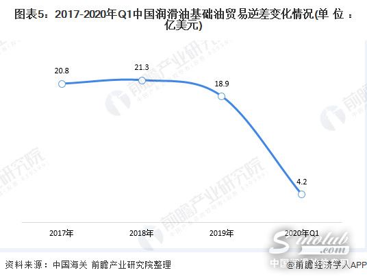 2020年一季度,我国基础油进出口逆差大幅缩水