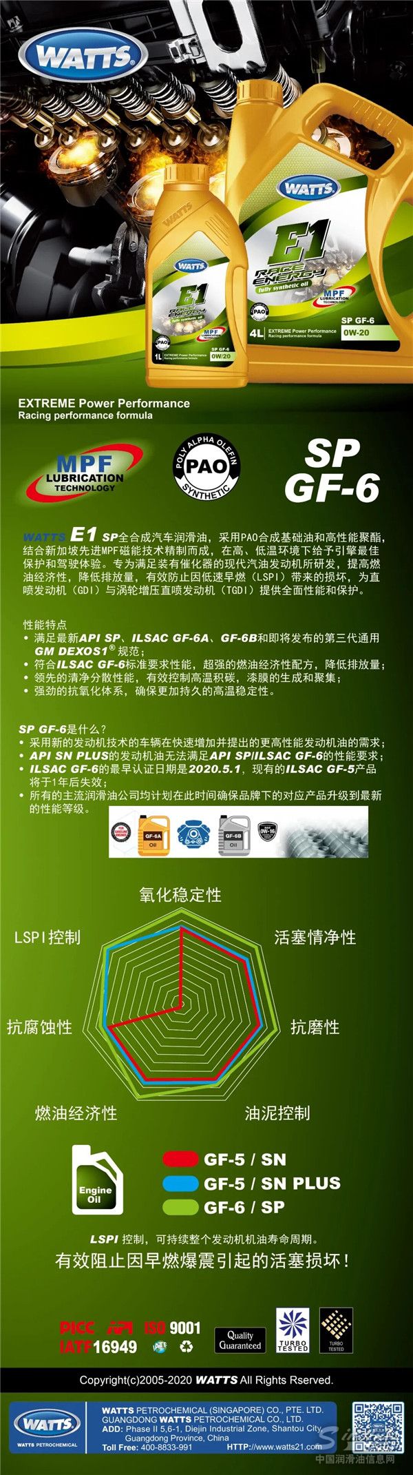2020年5月1日美国石油学会发布全新汽车发动机润滑油新标准—API SP标准。上一次升级标准已是两年前,这两年间汽车市场及行业标准不断提升,人们对于环境问题愈是重视,排放与能耗法规就愈加严格,引发一系列发动机技术革新,越来越多高性能、低排放的直喷涡轮增压发动机进入市场。
