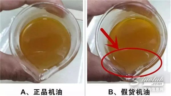 在常温状态下,正品机油的颜色都要比假货机油深很多。真油清纯透明,无杂质,无悬浮物,无沉淀物,晃动时流动性较好。假油或油色较深,或有杂质沉淀物,或味浓有刺激性,晃动时流动性较差。