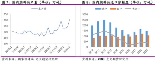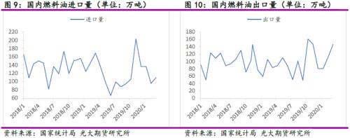 2019年以来,为了应对IMO2020的实施,我国燃料油生产转型加速,低硫燃料油生产初具规模。据隆众资讯数据统计,国内一季度低硫船燃产量为90万-100万吨,3月份在疫情影响下仍达到54万吨。据国家海关数据统计,2020年4月我国燃料油产量308.7万吨,同比增加88%,环比增加27%,低硫燃油产量开始发力;4月我国共进口燃料油109.71万吨,环比增加14.8%,同比大跌35.08%,低硫产量有效替代了部分进口量;4月我国出口燃料油146.65万吨,环比大涨32.71%,同比暴涨76.6%,随着国内沿海炼厂开始规模化生产低硫船燃,受益于优质资源的短距离供应,我国主要港口的低硫船燃价格已持平或低于新加坡,在市场份额竞争上或能取得有力位置,支撑4月我国燃料油出口量环比大涨。