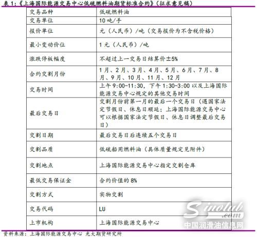 根据征求意见稿,低硫燃料油期货合约交易单位为10吨/手,最小变动价位为1元/吨,涨跌停板幅度为不超过上一交易日结算价±5%,最低交易保证金为合约价值的8%,交割单位为10吨,合约月份为1-12月。与上期所燃料油期货合约相比,上期能源低硫燃料油期货合约在交割品级、质量标准、运行不同阶段的持仓限额、标准仓单有效期、交易代码等方面均存在差异。