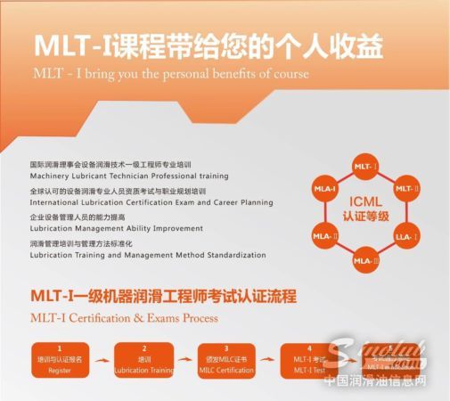 MLT-Ⅰ一级机器润滑工程师是国际机器润滑理事会(ICML)资质认证的一环,获得国际机器润滑理事会认证等于承认了您在应用机器润滑知识解决及保证润滑设备可靠性方面的专长。同时也表明工业界对您在机器润滑技术所具备的知识和技能的认可。
