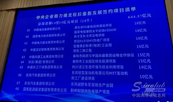 6月3日下午,国务院国资委与湖北省委省政府共同召开中央企业助力湖北疫后重振发展视频会。此次活动中,中国石油化工集团有限公司、中国三峡集团有限公司、国家能源投资集团有限责任公司等34家央企与湖北签约72个项目,总投资达3277.25亿元。