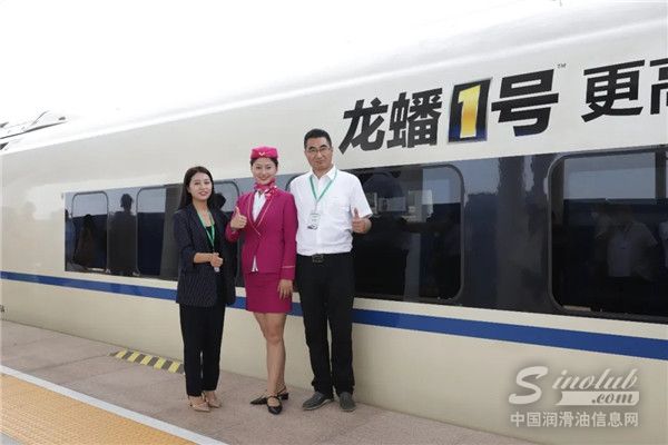在仪式现场,由“龙蟠1号”冠名的G2677次高铁列车整装待发。车厢内外,龙蟠润滑油的品牌元素遍布各处,精美的产品画面和理念标识让人过目不忘,它们将陪伴乘客们一路同行,将绿色化学理念传递给每一位潜在用户。