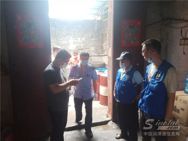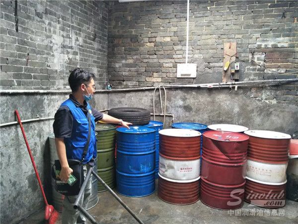 经现场清点查验,共查获18升机油73桶、18升液压油60桶,和没标签机油5桶,2升冷却液12瓶,其余4升机油18瓶、20斤无牌冷却液6桶、170公斤无牌机油7桶,镇工商部门已将有标签油桶扣押处理,其余没标签的油桶由北栅社区市场监督部门暂代保管,后续处理由北栅社区市场监督部门和虎门镇市场监管分局跟进。