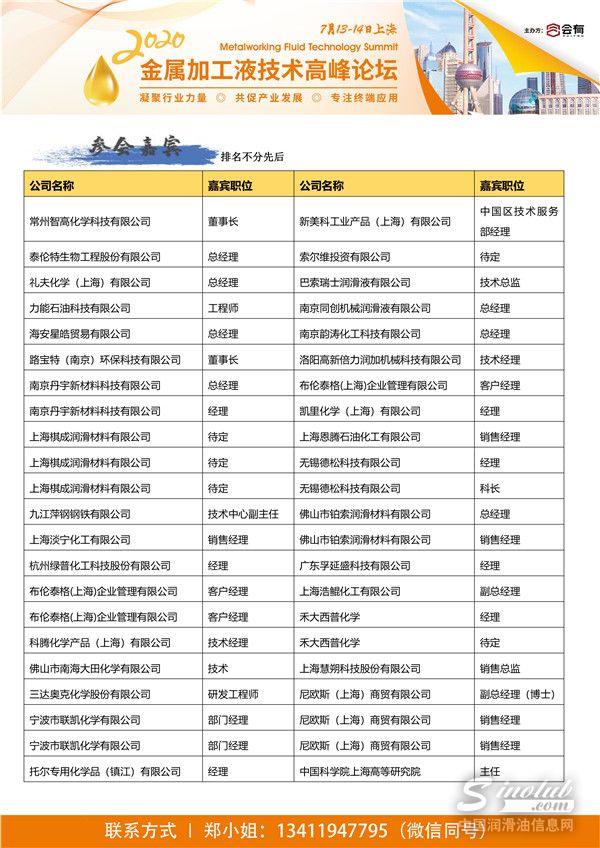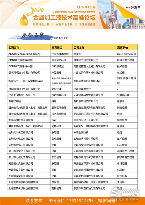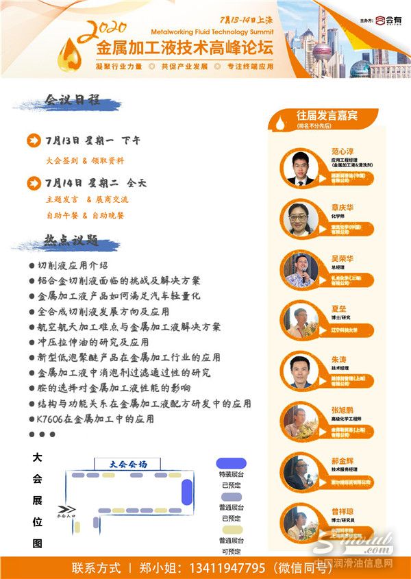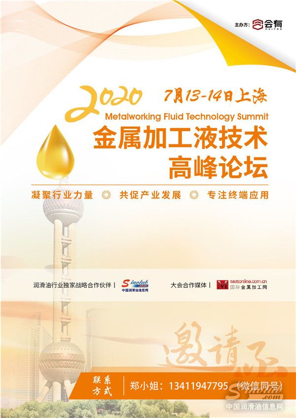 由上海会有商务咨询有限公司主办的“2020金属加工液技术高峰论坛”将为您提供一个行业交流平台、一场思想碰撞峰会,聚焦金属加工液发展一线资讯。